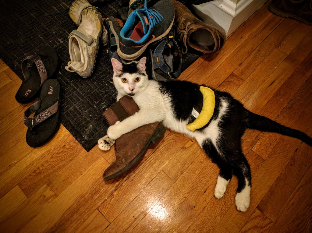 I honestly am not even sure how this is a question because EVERYTHING OBVIOUSLY. I love my pets. Felix was our first baby. We got him in 2016, two years into marriage from The Animal Rescue League of Boston. He was manic, yowling in his kennel. His tail, ears, and parts of his face were missing fur due to starvation on the streets. When we brought him home, it was not hard to see why; he has zero hunter instinct. He is pathetic, having put all his eggs in the begging basket. He recovered quickly and has been an important part of our family since.